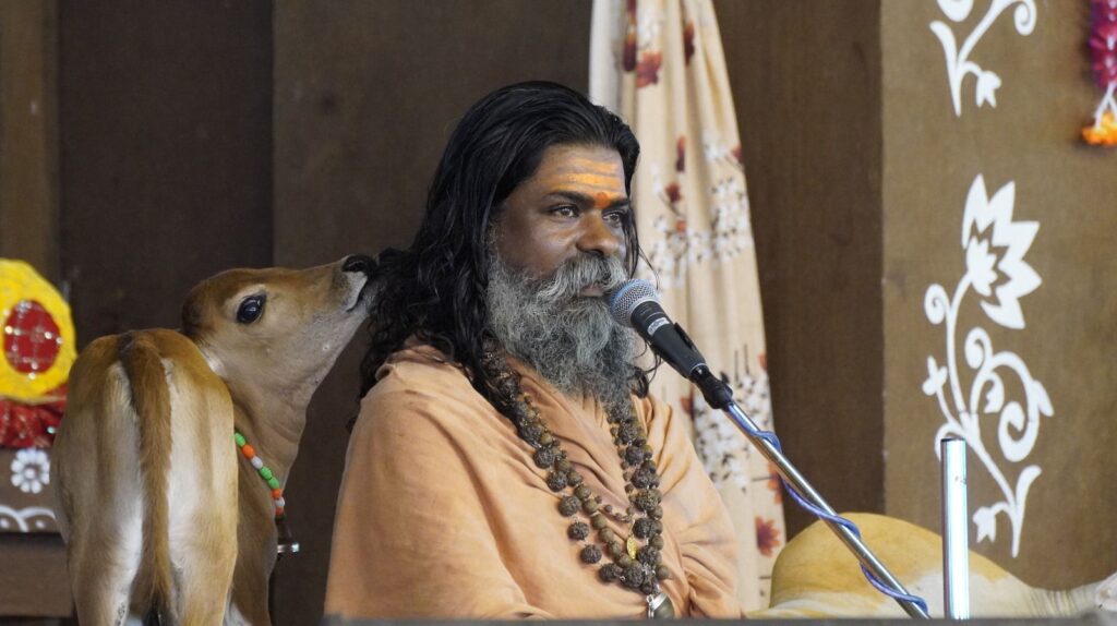 चित्र 1 : गोकथा सुनाते स्वामी गोपालानंद सरस्वती।