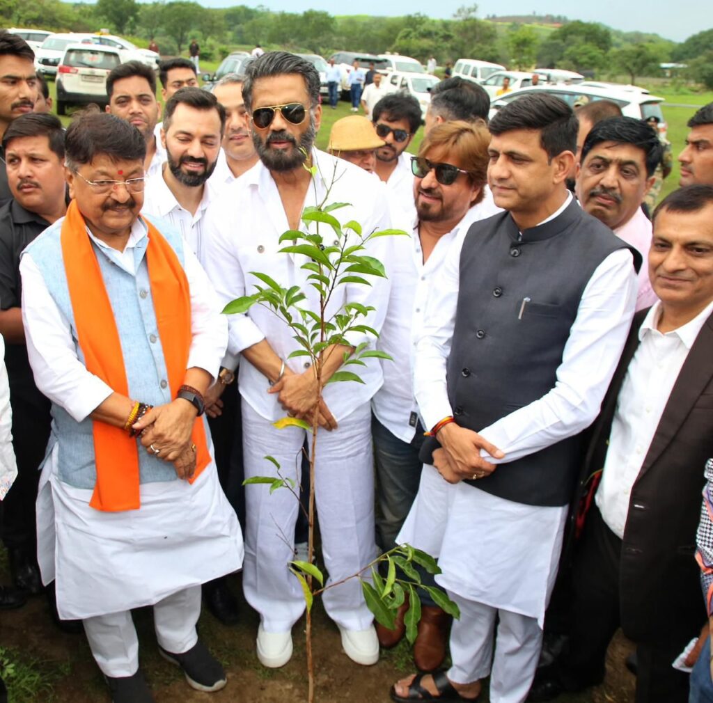 अभिनेता सुनील शेट्टी ने किया BSF जवानों और मंत्री विजयवर्गीय महापौर भार्गव के साथ पौधारोपण